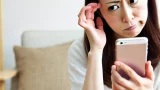 スマートフォンを見ながら、どうしようかと思案している日本人女性。
